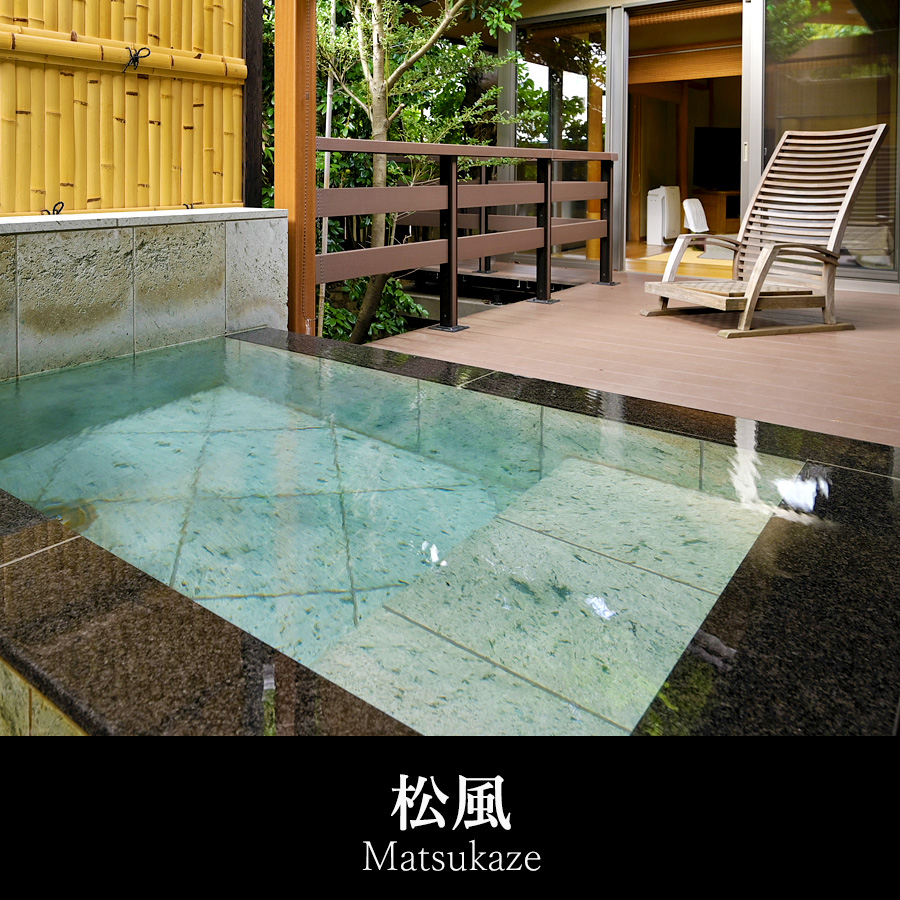 離れと特別室の一部のお部屋は、半露天風呂付。