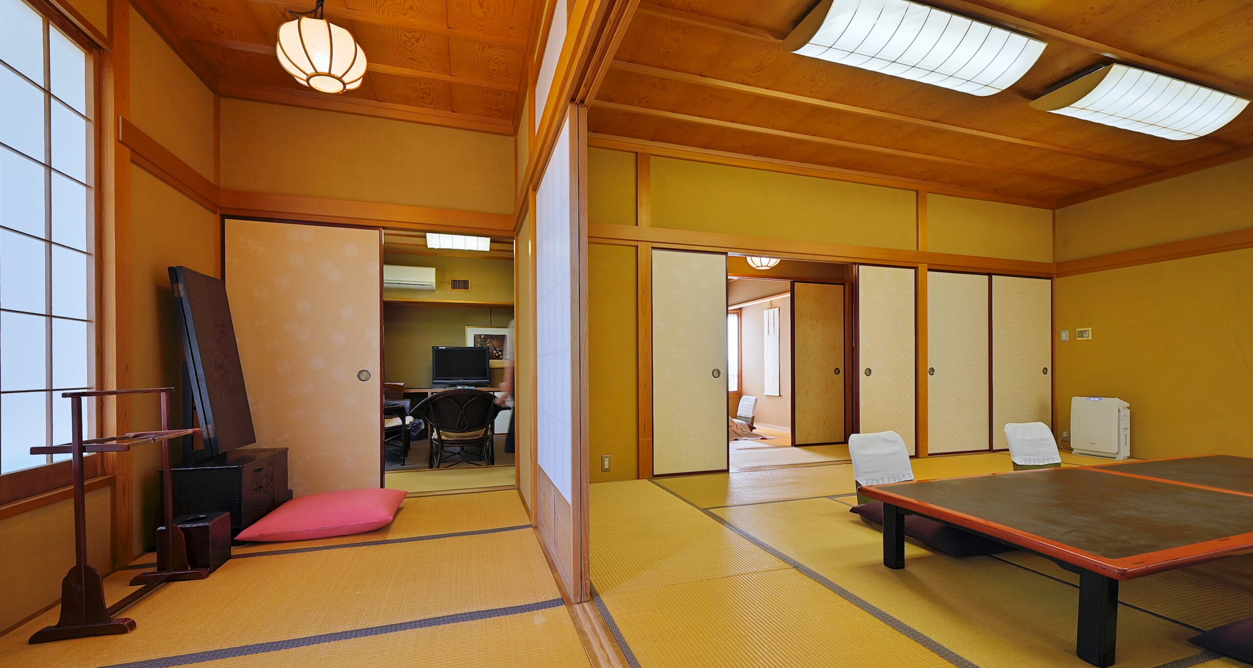和室15畳+掘りごたつ付6畳+次の間5畳+次の間3畳
