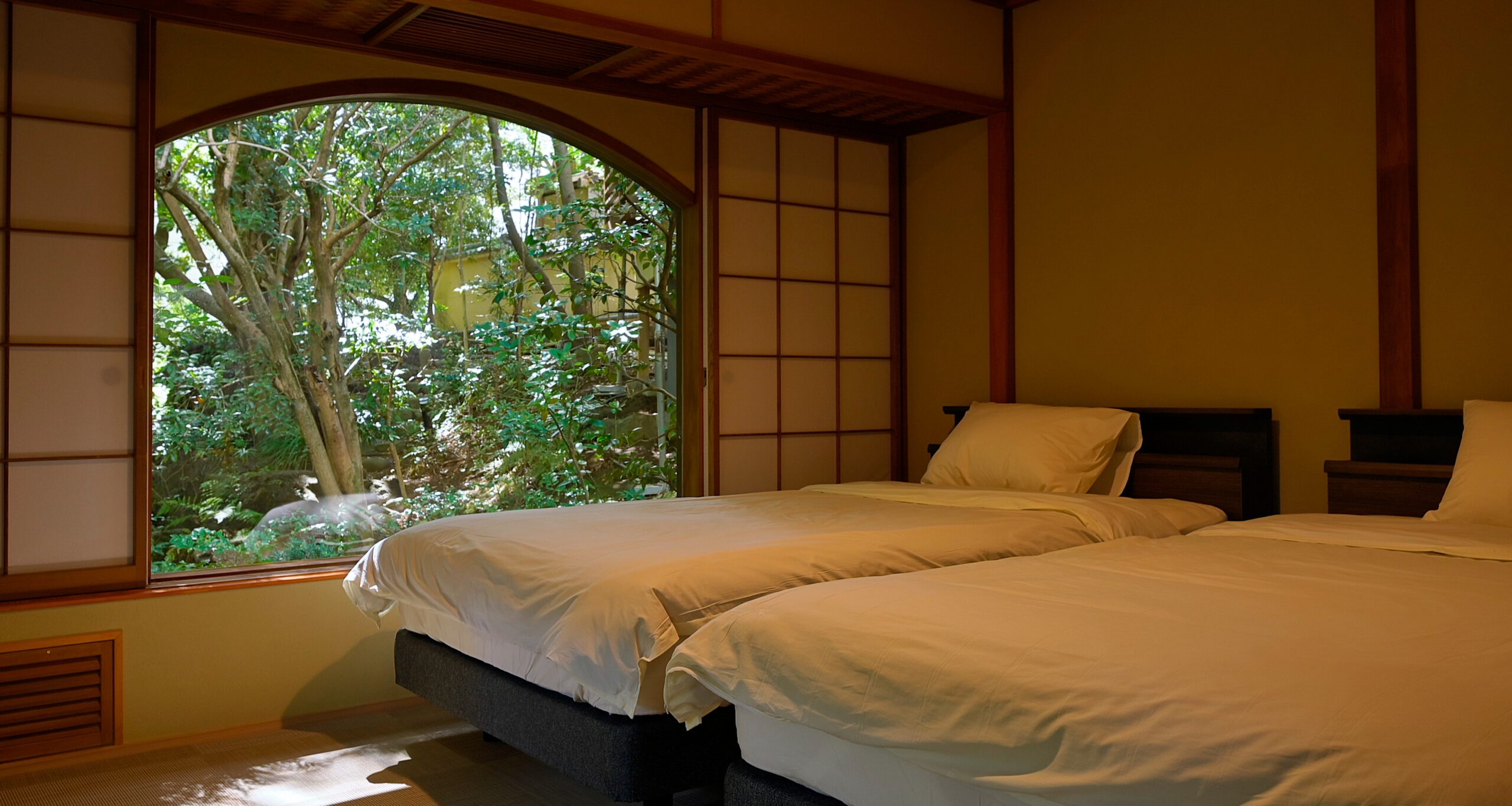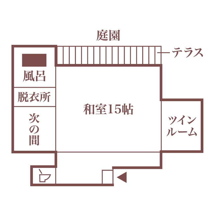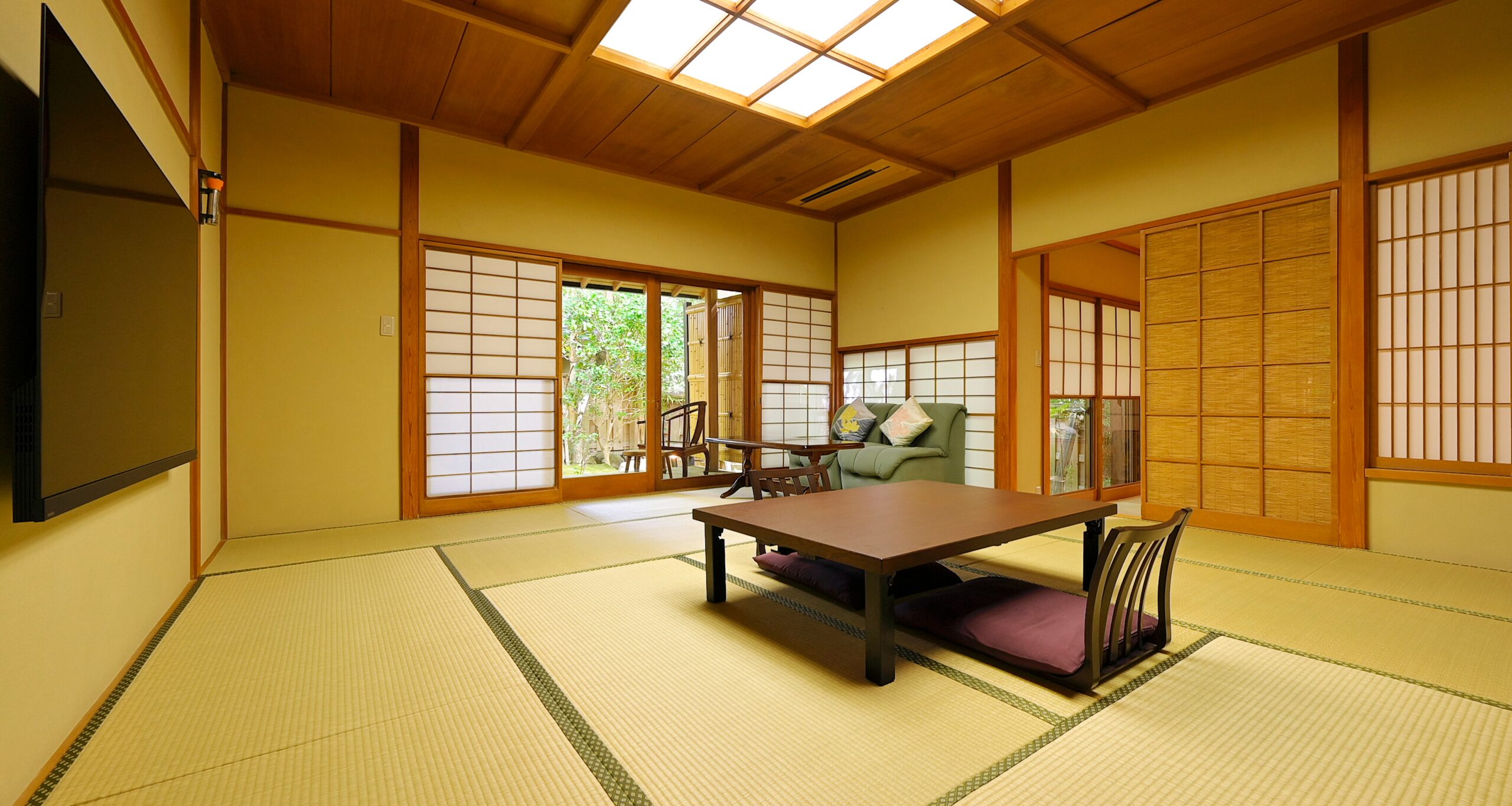 落ち着いた雰囲気のお庭が目に嬉しい、広々としたお部屋でゆったりと過ごしていただけます。