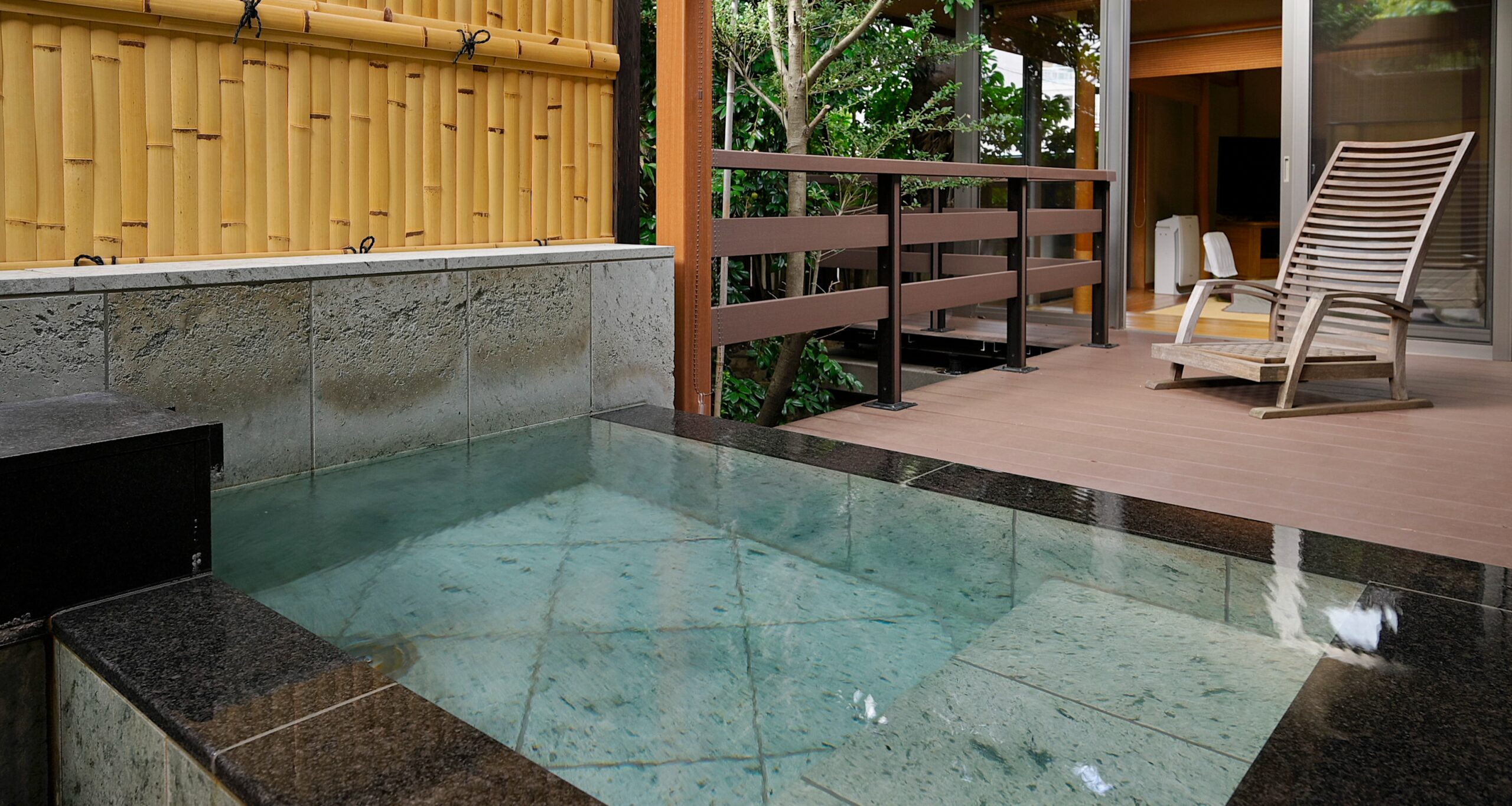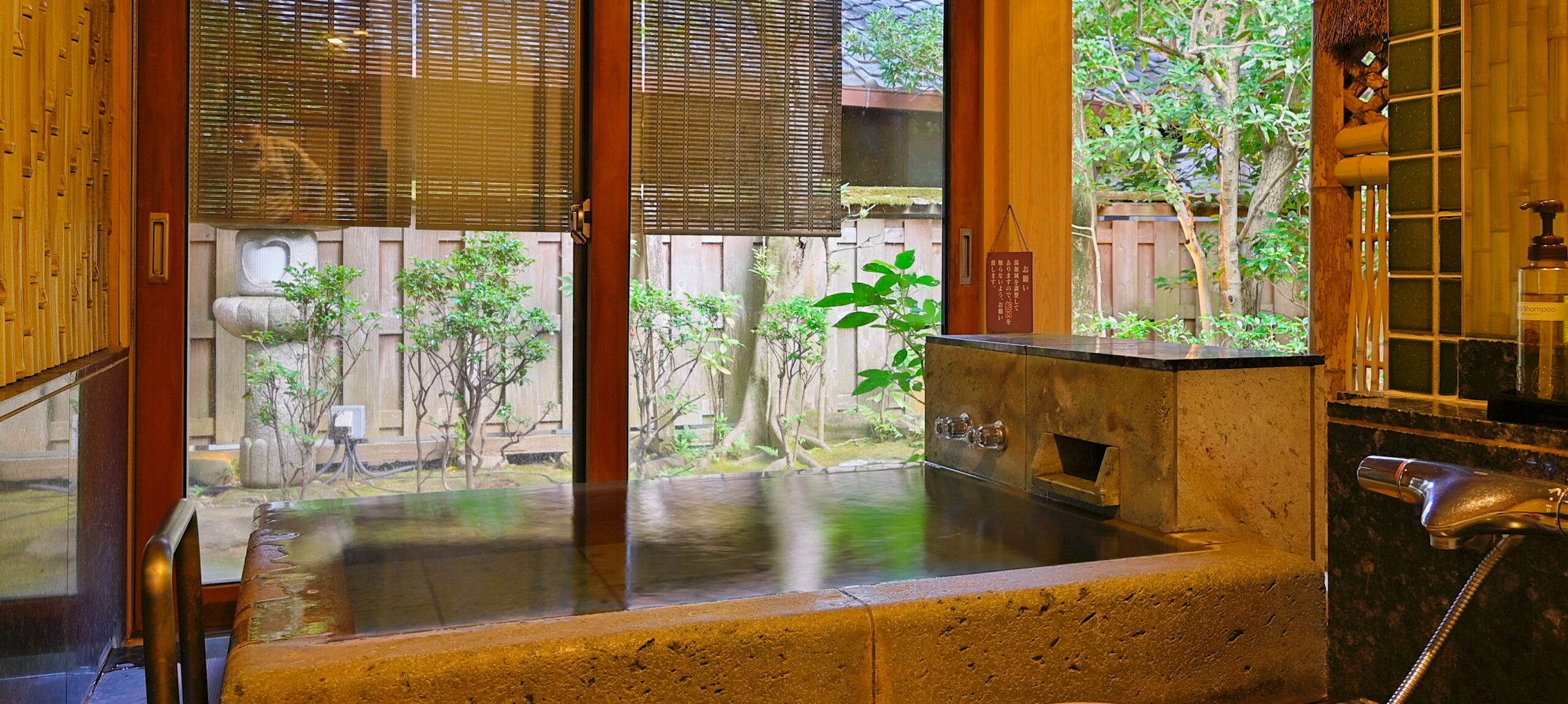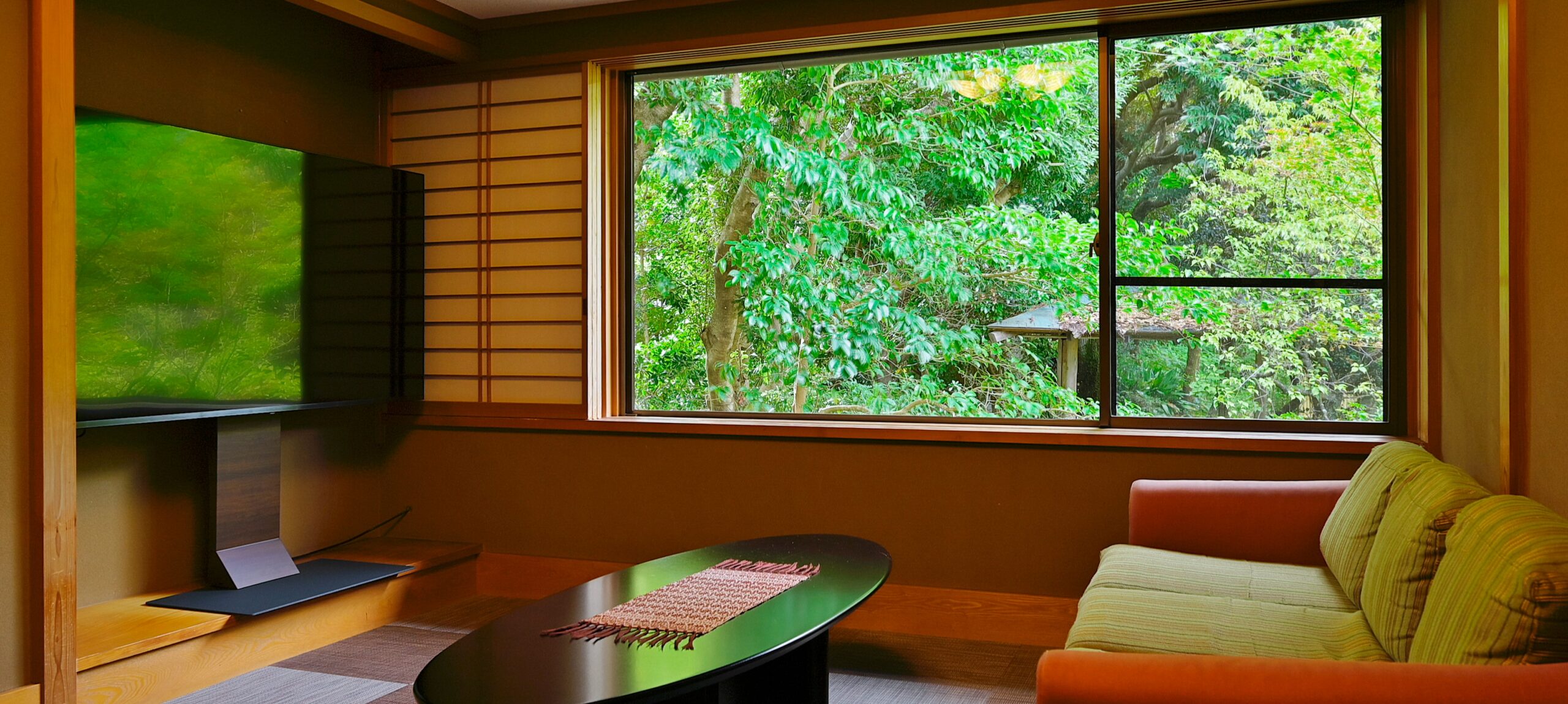 落ち着いた雰囲気のお庭が目に嬉しい、広々としたお部屋でゆったりと過ごしていただけます。