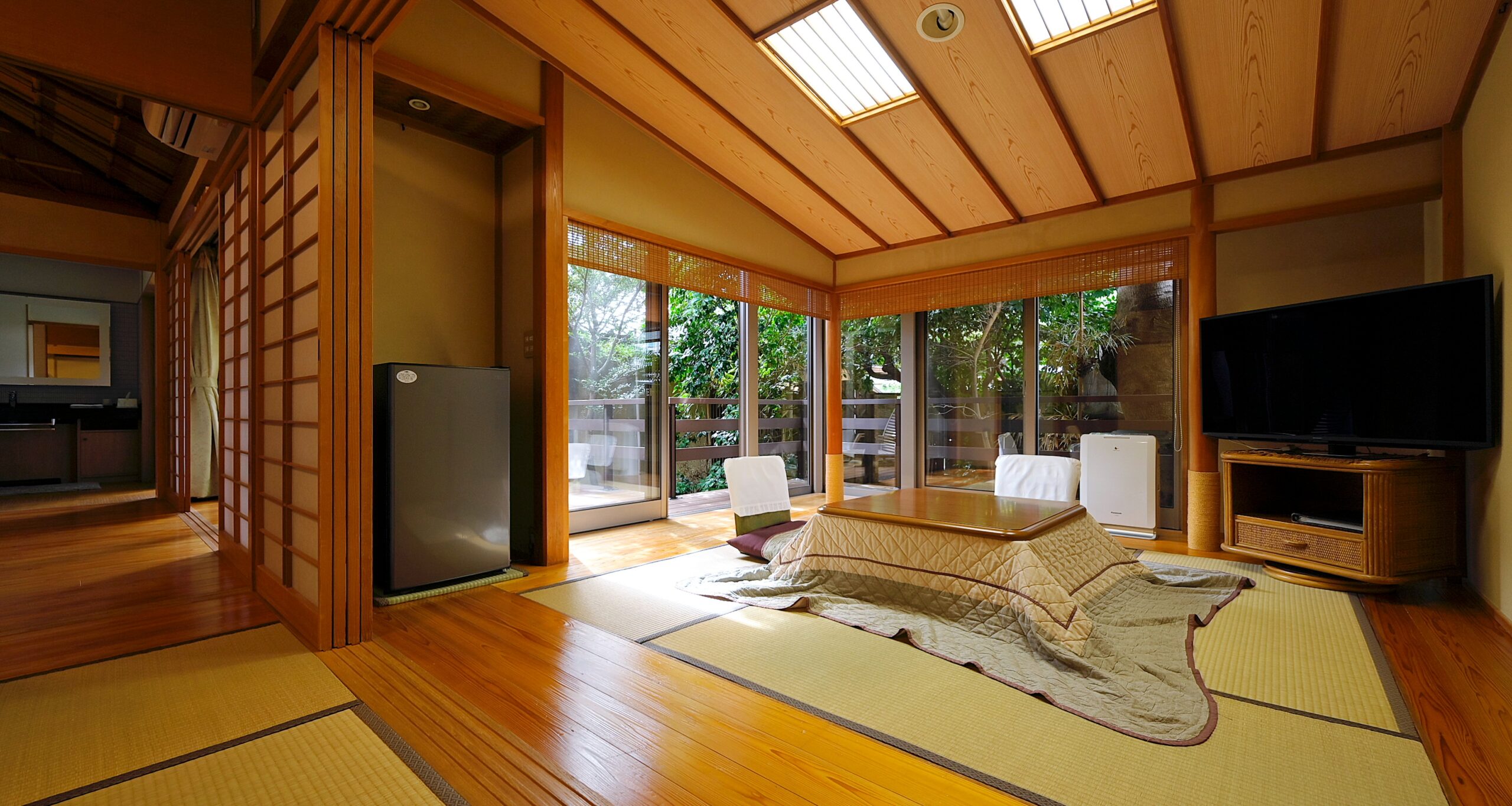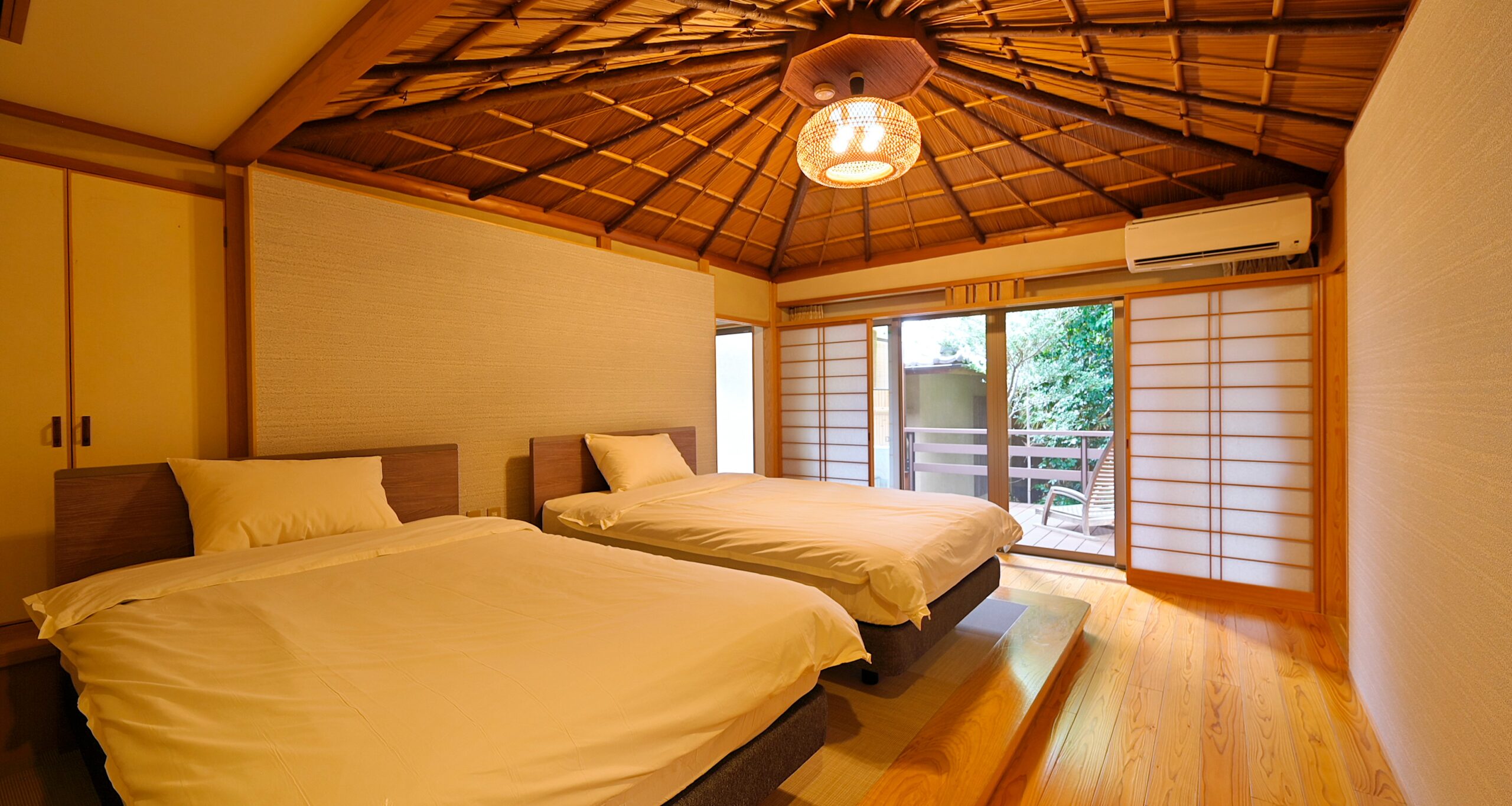 ゆったりくつろげる和室の周りには、開放感いっぱいのテラスが。広々ベッドから見渡す景色も最高です。